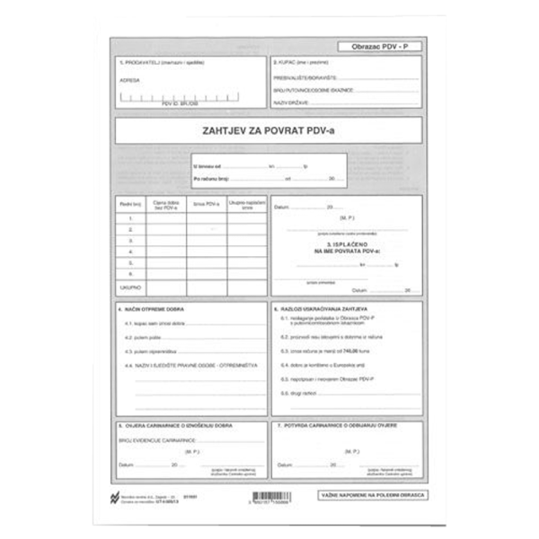 Obrazac I-505/13 zahtjev za povrat poreza